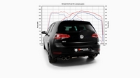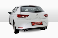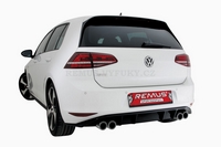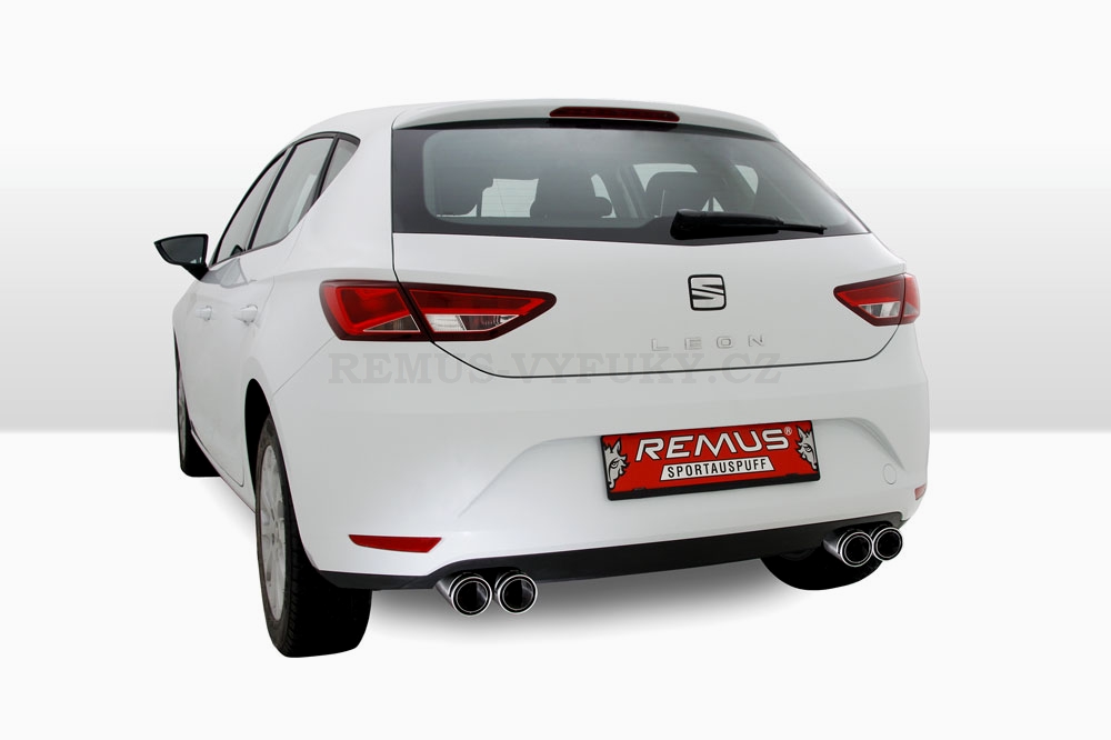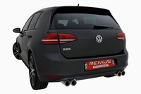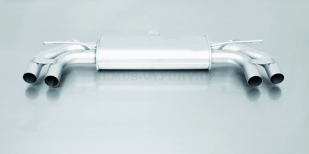 Tłumik sportowy z wyjściami 2+2 jak w Golfie R. Oryginalna rura Ø 65 mm - rura REMUS Ø 70 mm. Montaż możliwy tylko z oryginalnym dyfuzorem z Golfa R facelift, oryginalny nr katalogowy VW: 5G6 807 568 AA - możemy dostarczyć. Pozostałe informacje są takie same jak w przypadku standardowego tłumika z końcówkami 1+1. W tym przypadku wystarczy zakupić 4 końcówki - patrz lista poniżej.